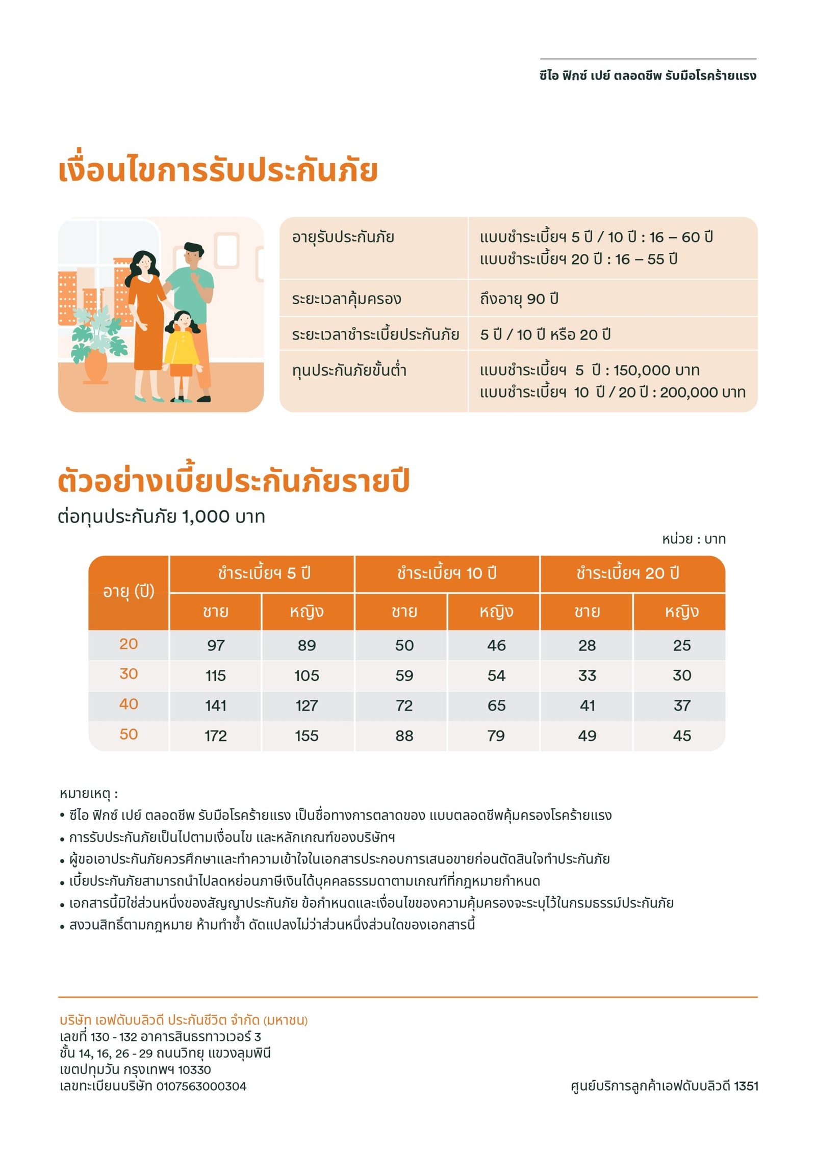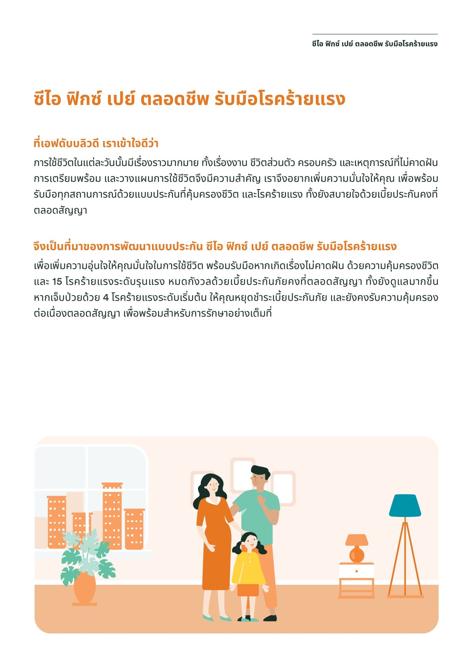 CI Fixed Pay ซีไอ ฟิกซ์ เปย์ ซีไอ ฟิกซ์ เปย์ ตลอดชีพ รับมือโรคร้ายแรง เอฟดับบลิวดี ประกันชีวิต (FWD) ขอข้อมูลเพิ่ม กดที่นี่